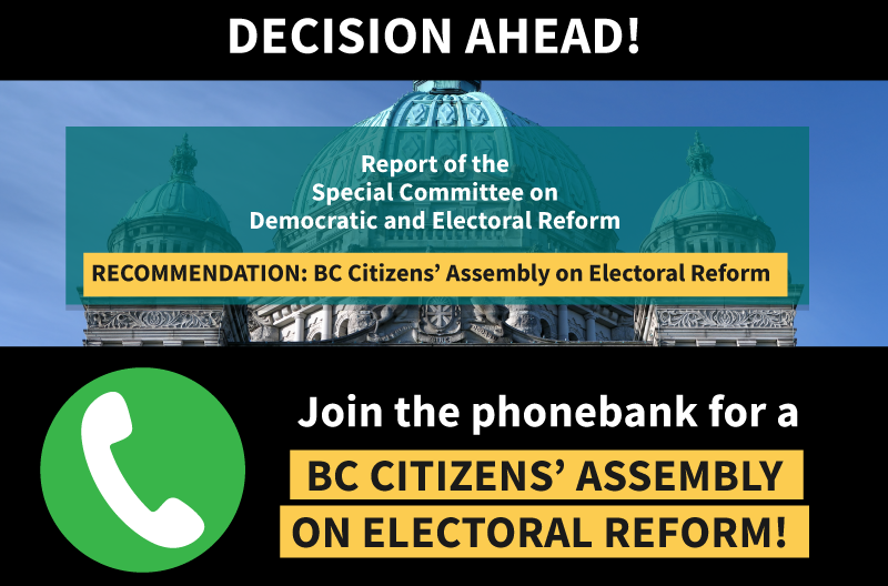 On November 26, 2025, BC's all-party Special Committee on Democratic and Electoral Reform released its report, recommending a Citizens' Assembly on Electoral Reform.